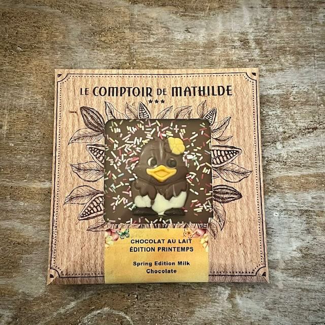 Eine leckere Schokolade von Le Comptoir de Mathilde mit 4 entzückenden Ostermotiven – zum Zerbeißen oder auf der Zunge zergehen lassen.